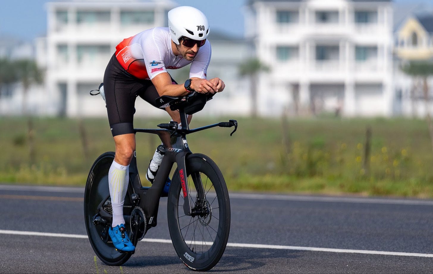 No better feeling than jumping on your bike and getting to work. Itās my favorite part of the race. The first 10 miles was congested and youāre battling others for position; motorcades are in the mix with refs watching you, youāre passing each other, getting passed, sometimes yelling at each other - sorry TREK bike guy. Athletes are feeling each other out. Youāve got your plan, and you donāt know anyone elseās plan. Itās the best!