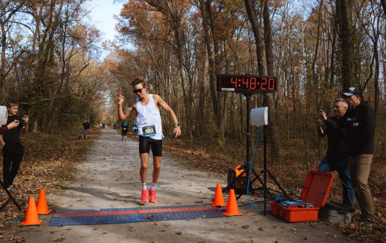 The Training Secrets of the New 50-Mile King: On November 11, Charlie Lawrence set a new 50-mile world record, running the distance in a time of 4:48:21 and besting the previous record by nearly two minutes. Read up on his training that led to the record and what the actual race was like. [Inside Hook]