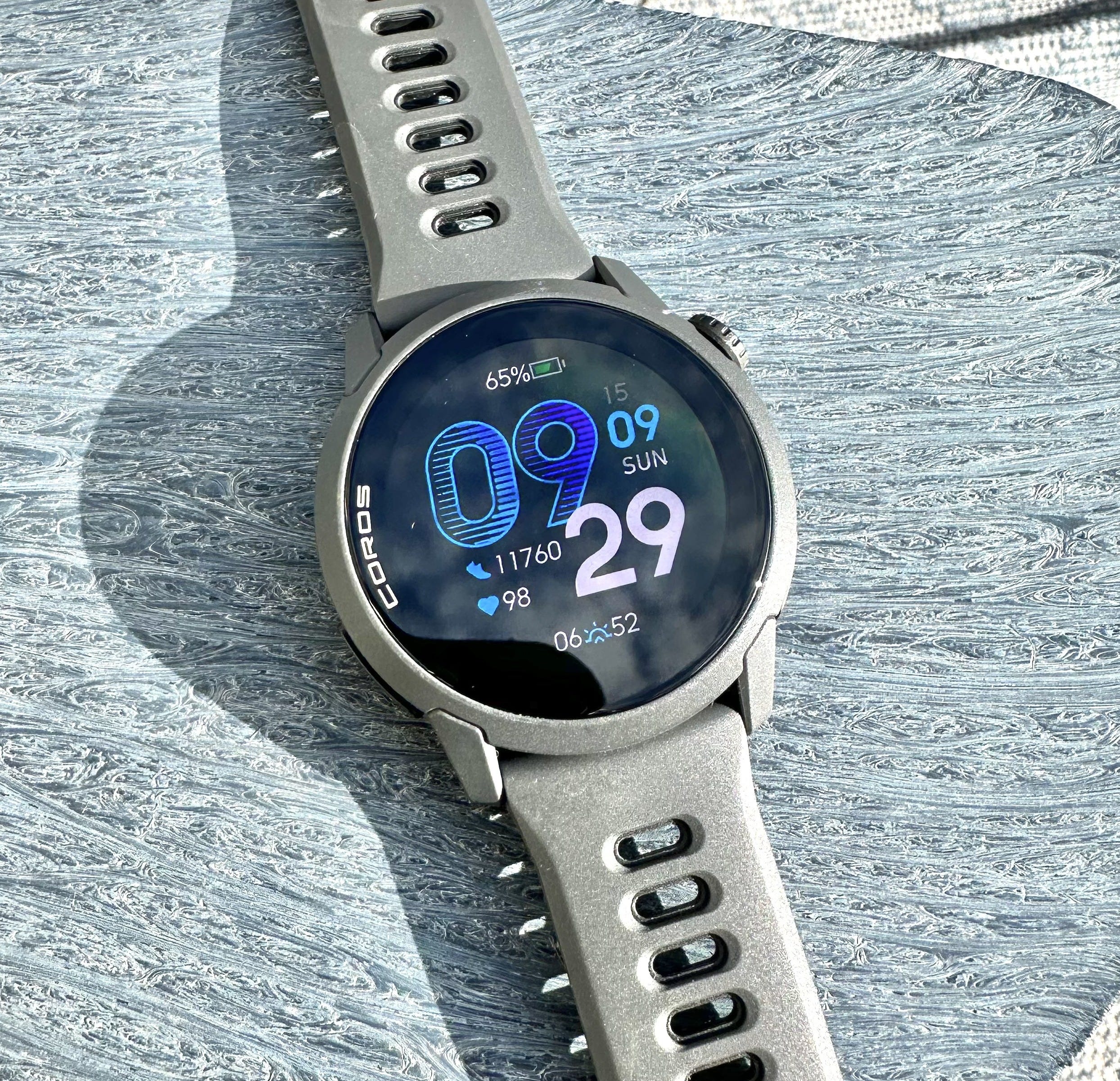 Its 11.8 mm profile and new 2.5D glass edge felt smooth, not sharp in any way. I’ve worn plenty of watches that remind you they’re there every time you move your arms in a run, or try to rip off your wetsuit mid-Ironman. This one is different. It blends in, never asking to be main character.